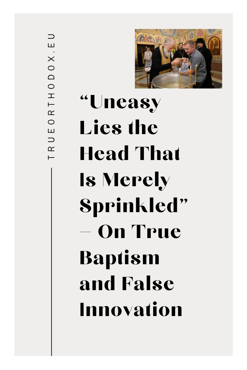 In recent years, a troubling trend has spread throughout so-called “Orthodox” circles—a trend so widespread that many now accept it without question, as though novelty were tradition and convenience were theology. The holy Mystery of Baptism, once guarded with fear and precision by the Fathers, is increasingly reduced to little more than the wetting of the head: a few drops of water, a brief gesture, and the assumption that the soul has been born again.